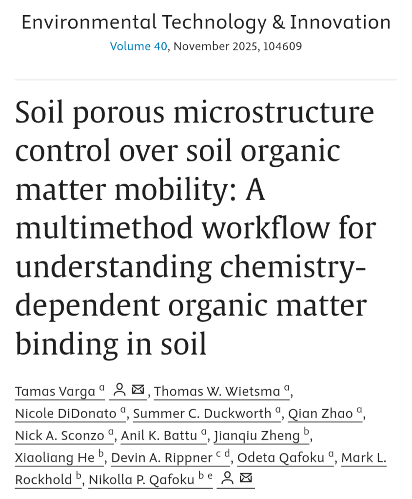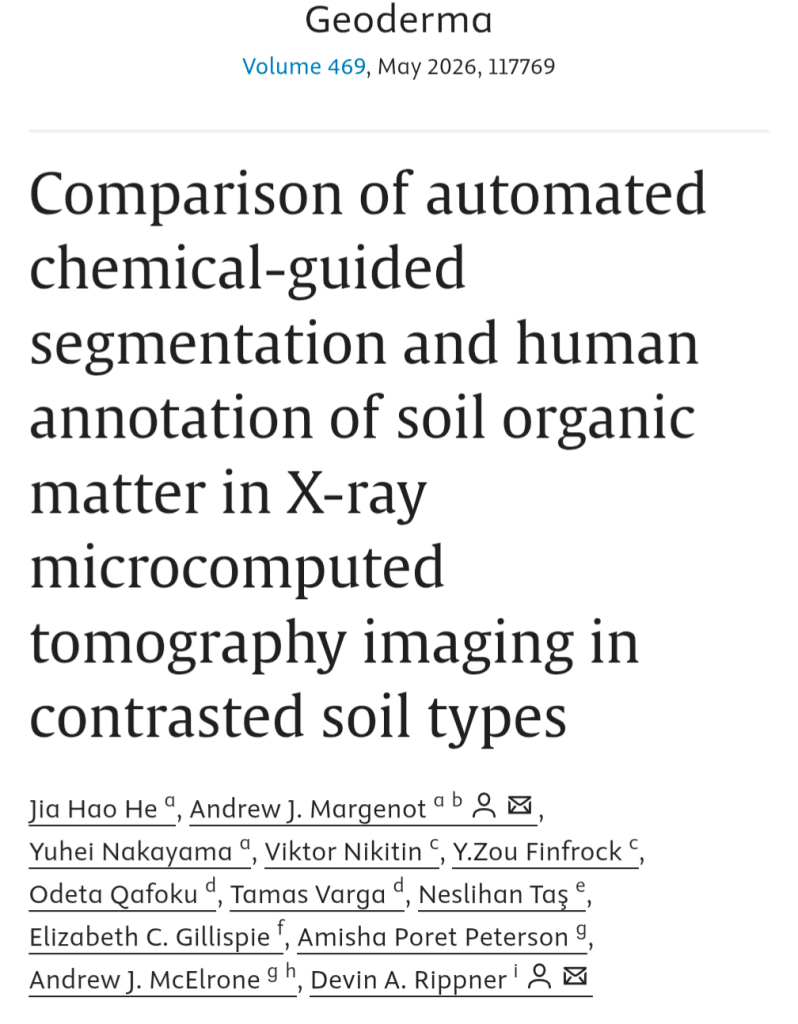 The lab is investigating processes that lead to aggregate formation and soil carbon storage using synchrotron based X-ray computed tomography, scanning electron microscopy, and Fourier transform infrared spectro-microscopy.